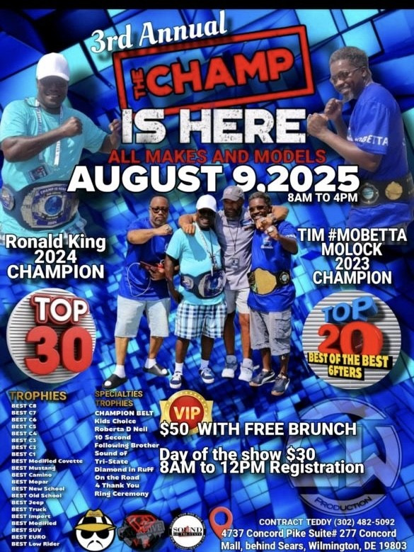 On August 9th, The Baltimore County Corvette Club, Inc. participated in the 3rd Annual "The Champ is Here Car Show" in Wilmington DE. Over 200 Cars, Jeeps, & Trucks participated. Cars from Maryland to Michigan were in attendance.